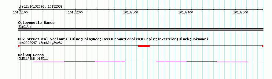 | Analysis | Hierarchical clustering of anomalous readpairs was used to identify groupings of five or more readpairs that had a similar size and position. Read pairs were defined as anomalous if they had high-confidence alignments of each individual read that nevertheless were either incorrectly oriented or implied an insert size of at least 3 standard deviations outside the sample median. |