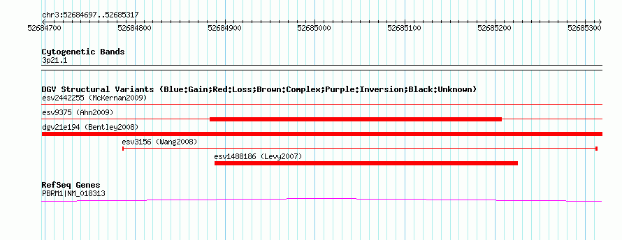 | Analysis | Hierarchical clustering of anomalous readpairs was used to identify groupings of five or more readpairs that had a similar size and position. Read pairs were defined as anomalous if they had high-confidence alignments of each individual read that nevertheless were either incorrectly oriented or implied an insert size of at least 3 standard deviations outside the sample median. |
