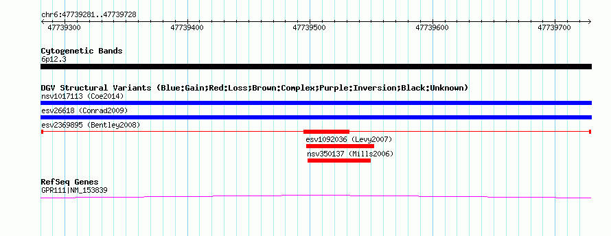 | Analysis | Hierarchical clustering of anomalous readpairs was used to identify groupings of five or more readpairs that had a similar size and position. Read pairs were defined as anomalous if they had high-confidence alignments of each individual read that nevertheless were either incorrectly oriented or implied an insert size of at least 3 standard deviations outside the sample median. |