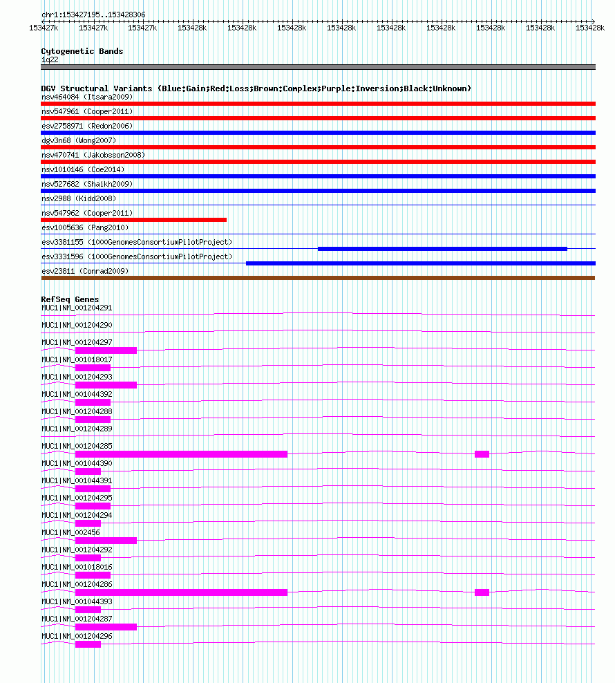 Variant DetailsVariant: esv23811 | Internal ID | 11041044 | | Landmark | | | Location Information | | | Cytoband | 1q22 | | Allele length | | Assembly | Allele length | | hg38 | 3797 | | hg19 | 1112 | | hg18 | 1112 |