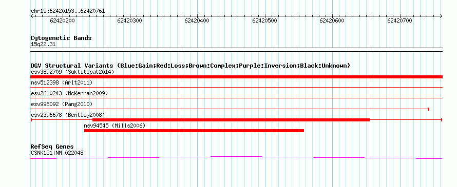 | Analysis | Hierarchical clustering of anomalous readpairs was used to identify groupings of five or more readpairs that had a similar size and position. Read pairs were defined as anomalous if they had high-confidence alignments of each individual read that nevertheless were either incorrectly oriented or implied an insert size of at least 3 standard deviations outside the sample median. |