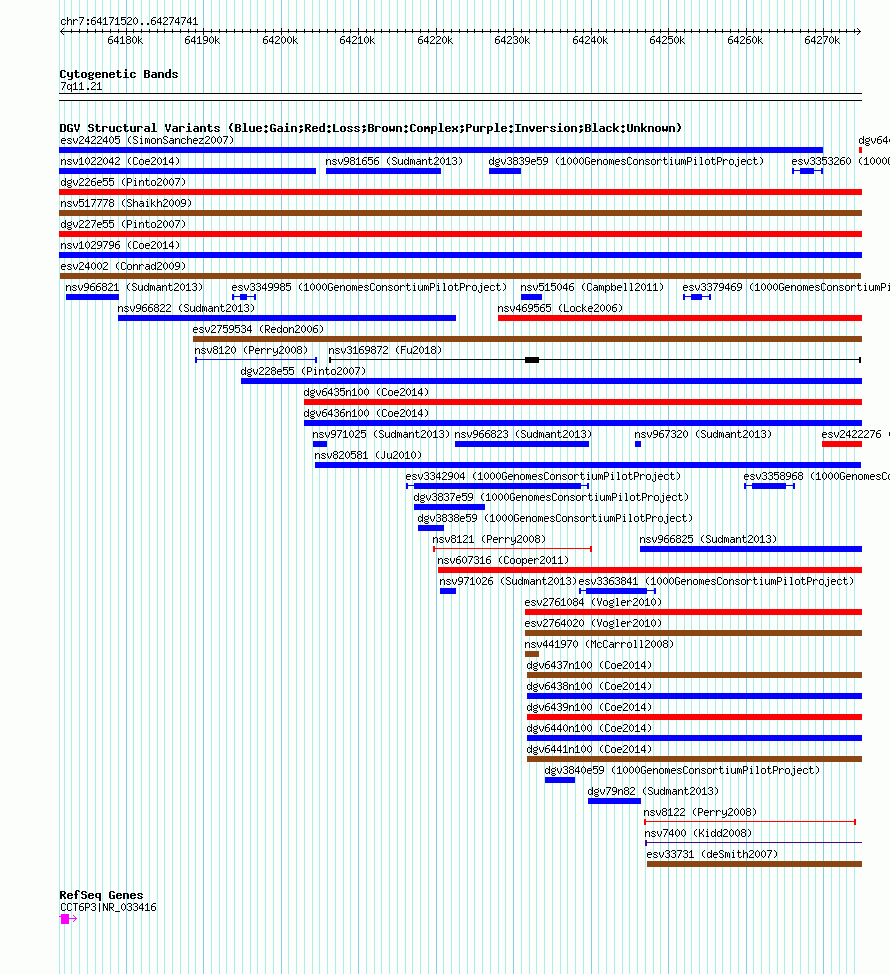 Variant DetailsVariant: esv24002 | Internal ID | 11387921 | | Landmark | | | Location Information | | | Cytoband | 7q11.21 | | Allele length | | Assembly | Allele length | | hg38 | 103222 | | hg19 | 103222 | | hg18 | 103222 |