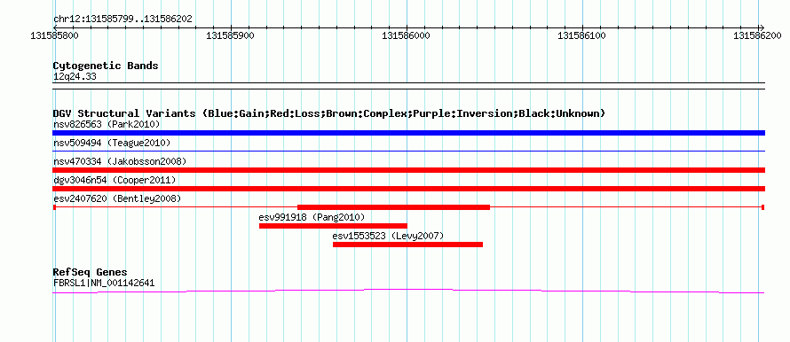 | Analysis | Hierarchical clustering of anomalous readpairs was used to identify groupings of five or more readpairs that had a similar size and position. Read pairs were defined as anomalous if they had high-confidence alignments of each individual read that nevertheless were either incorrectly oriented or implied an insert size of at least 3 standard deviations outside the sample median. |