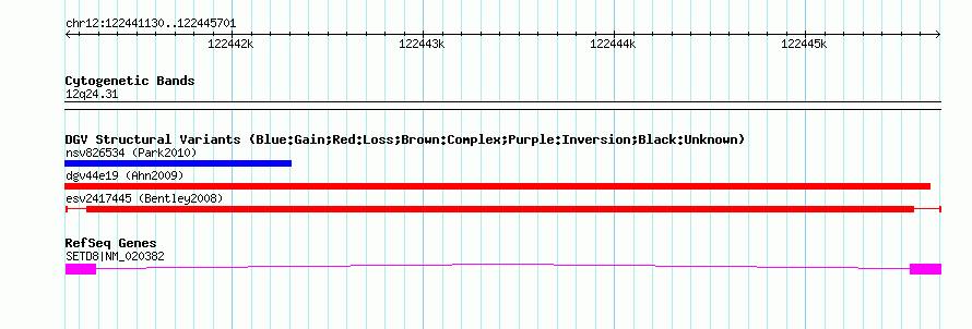 | Analysis | Hierarchical clustering of anomalous readpairs was used to identify groupings of five or more readpairs that had a similar size and position. Read pairs were defined as anomalous if they had high-confidence alignments of each individual read that nevertheless were either incorrectly oriented or implied an insert size of at least 3 standard deviations outside the sample median. |