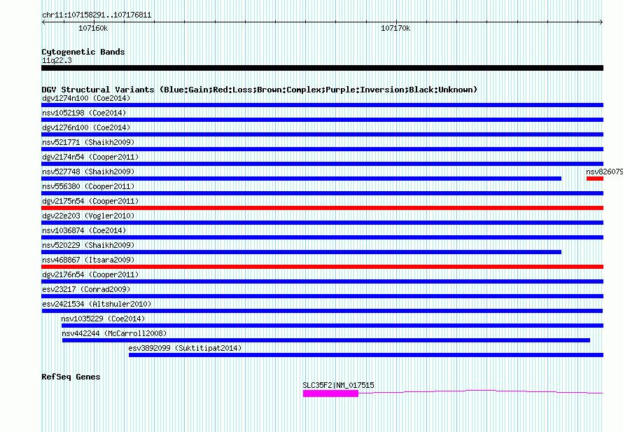 Variant DetailsVariant: esv2421534 | Internal ID | 8251982 | | Landmark | | | Location Information | | | Cytoband | 11q22.3 | | Allele length | | Assembly | Allele length | | hg38 | 18521 | | hg19 | 18521 | | hg18 | 18521 |