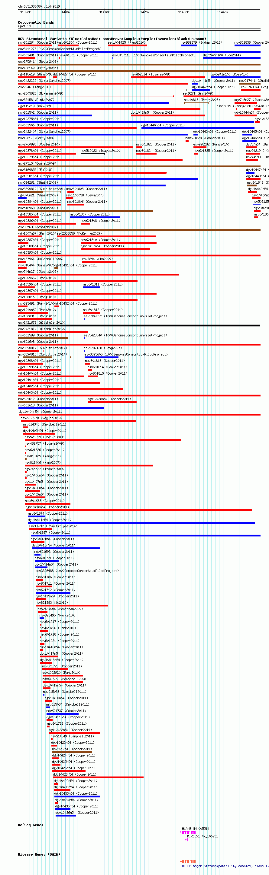 Variant DetailsVariant: esv2421676 | Internal ID | 8252124 | | Landmark | | | Location Information | | | Cytoband | 6p21.33 | | Allele length | | Assembly | Allele length | | hg38 | 61240 | | hg19 | 61240 | | hg18 | 61240 |