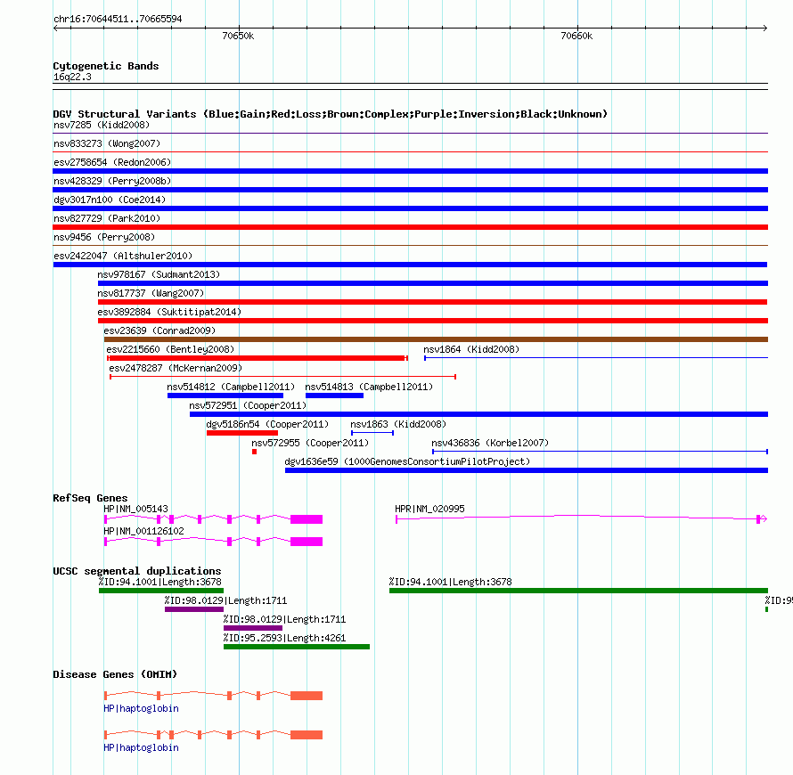 Variant DetailsVariant: esv2422047 | Internal ID | 7905809 | | Landmark | | | Location Information | | | Cytoband | 16q22.2 | | Allele length | | Assembly | Allele length | | hg38 | 21084 | | hg19 | 21084 | | hg18 | 21084 |