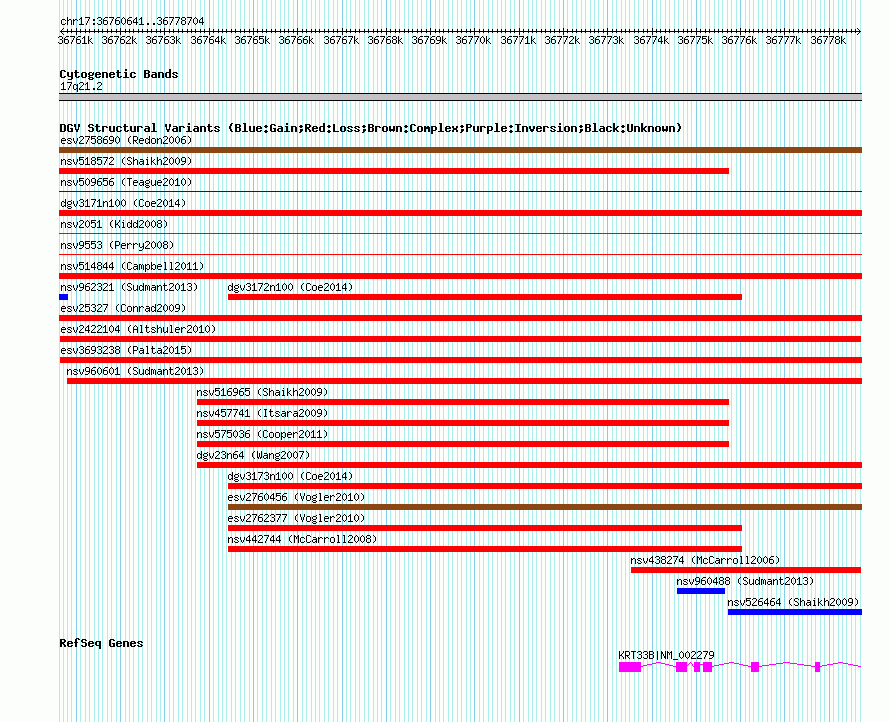 Variant DetailsVariant: esv2422104 | Internal ID | 8252552 | | Landmark | | | Location Information | | | Cytoband | 17q21.2 | | Allele length | | Assembly | Allele length | | hg38 | 18064 | | hg19 | 18064 | | hg18 | 18064 |