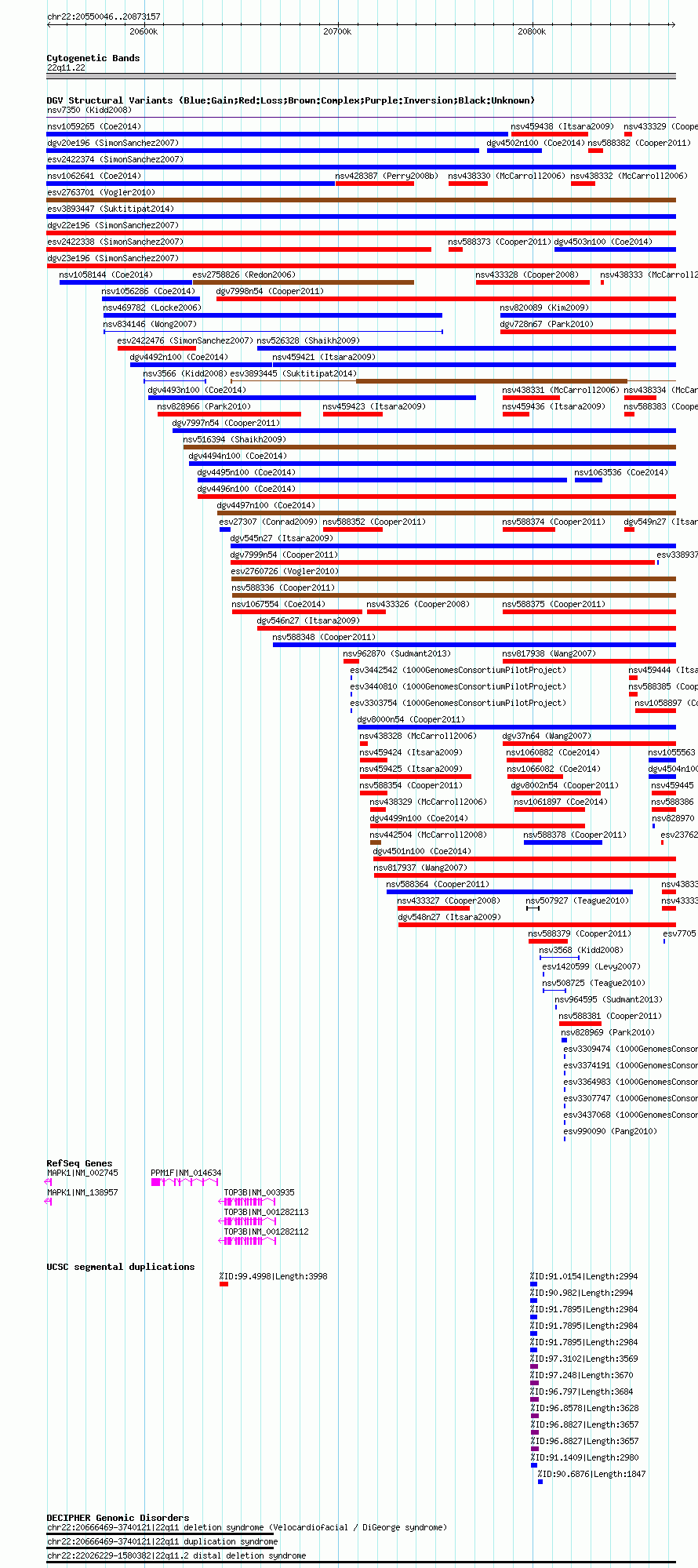 Variant DetailsVariant: esv2422394| Internal ID | 7906491 | | Landmark | | | Location Information | | | Cytoband | 22q11.22 | | Allele length | | Assembly | Allele length | | hg38 | 323013 | | hg19 | 323112 | | hg18 | 323112 | | hg17 | 323112 |
