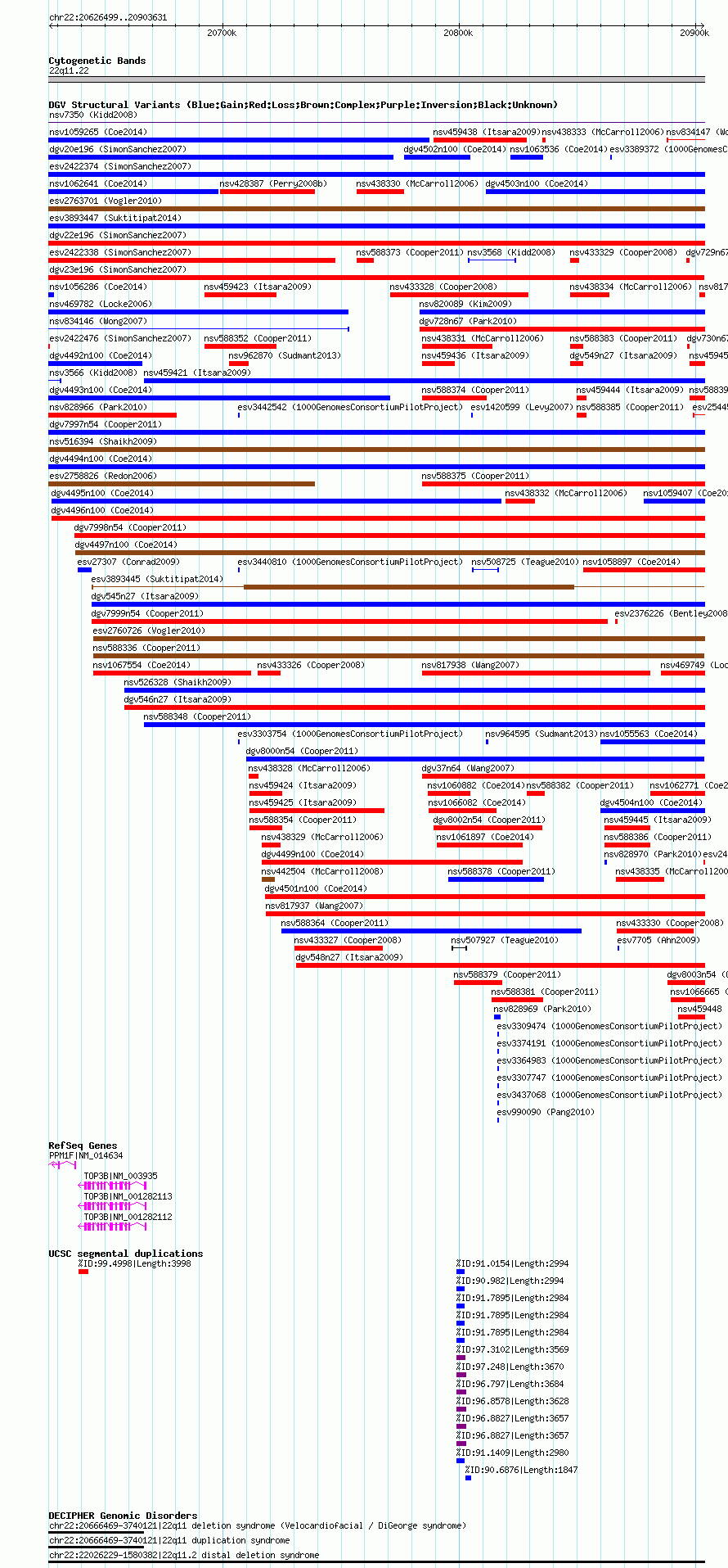 Variant DetailsVariant: esv2422458| Internal ID | 7906555 | | Landmark | | | Location Information | | | Cytoband | 22q11.22 | | Allele length | | Assembly | Allele length | | hg38 | 277113 | | hg19 | 277133 | | hg18 | 277133 | | hg17 | 277133 |