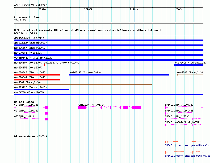 Variant DetailsVariant: esv24290 | Internal ID | 11388209 | | Landmark | | | Location Information | | | Cytoband | 22q11.23 | | Allele length | | Assembly | Allele length | | hg38 | 41383 | | hg19 | 41383 | | hg18 | 41383 |