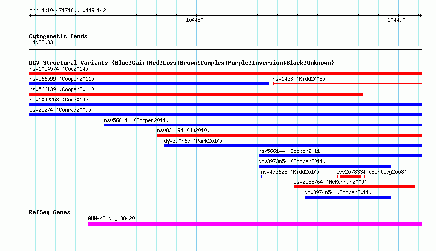 Variant DetailsVariant: esv25274 | Internal ID | 11389193 | | Landmark | | | Location Information | | | Cytoband | 14q32.33 | | Allele length | | Assembly | Allele length | | hg38 | 19427 | | hg19 | 19427 | | hg18 | 19427 |