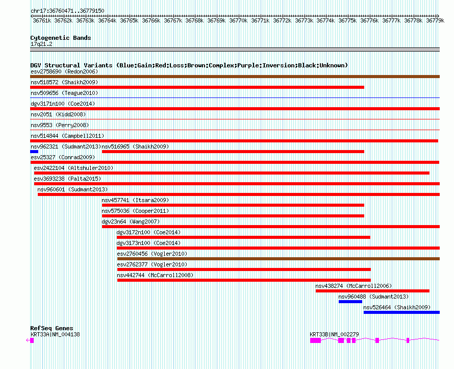 Variant DetailsVariant: esv25327 | Internal ID | 11389246 | | Landmark | | | Location Information | | | Cytoband | 17q21.2 | | Allele length | | Assembly | Allele length | | hg38 | 18680 | | hg19 | 18680 | | hg18 | 18680 |