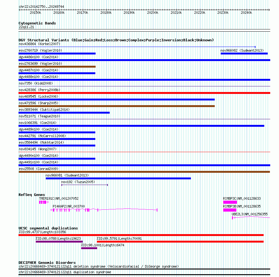 Variant DetailsVariant: esv25508 | Internal ID | 11042741 | | Landmark | | | Location Information | | | Cytoband | 22q11.21 | | Allele length | | Assembly | Allele length | | hg38 | 106995 | | hg19 | 106995 | | hg18 | 106995 |