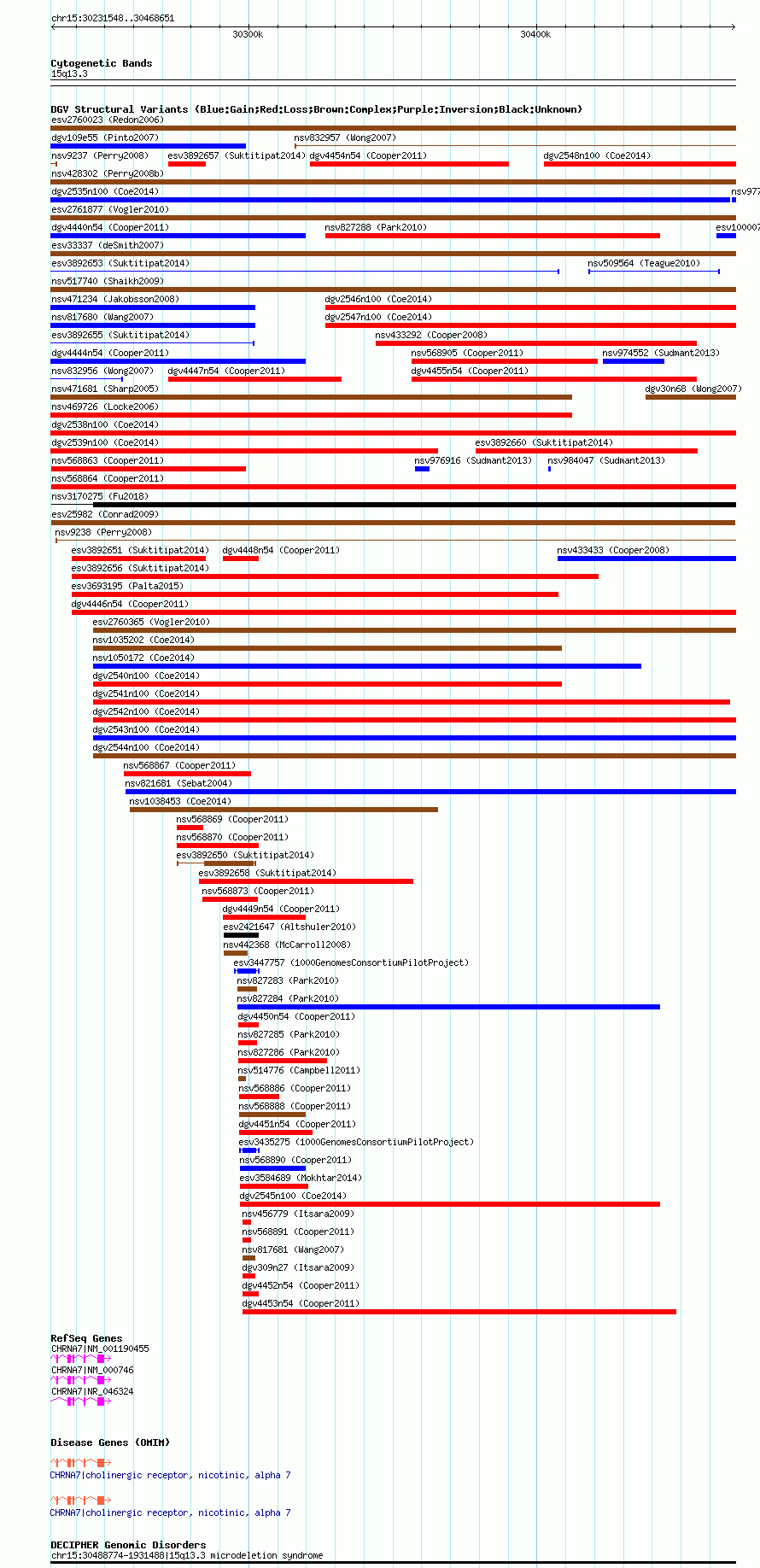 Variant DetailsVariant: esv25982 | Internal ID | 11389901 | | Landmark | | | Location Information | | | Cytoband | 15q13.3 | | Allele length | | Assembly | Allele length | | hg38 | 237104 | | hg19 | 237104 | | hg18 | 237104 |