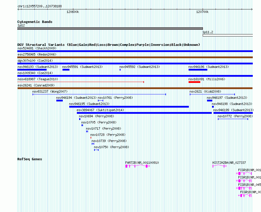 Variant DetailsVariant: esv26241 | Internal ID | 11390160 | | Landmark | | | Location Information | | | Cytoband | 1p11.2 | | Allele length | | Assembly | Allele length | | hg38 | 170754 | | hg19 | 180980 | | hg18 | 180980 |