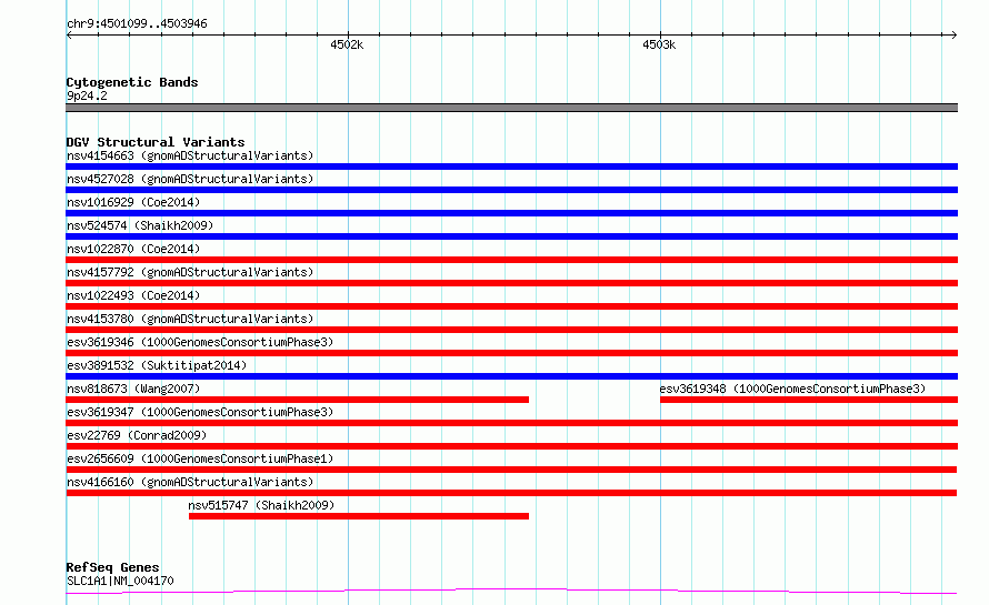 | | Variant Type | CNV deletion | | Copy Number | | | Allele State | | | Allele Origin | | | Probe Count | | | Validation Flag | | | Merged Status | M | | Merged Variants | | | Supporting Variants | essv5411925, essv6335950, essv5826774, essv6309344, essv6312725, essv5530097, essv5498253, essv5470902, essv6436415, essv6124981, essv5754597, essv6058406, essv6320774, essv6238766, essv6109376, essv6096392, essv6557039, essv5940321, essv5573644, essv5490341, essv5688940 | | Samples | NA18486, NA20346, NA19098, NA19381, NA19379, NA18519, NA19382, NA19448, NA18916, NA19471, NA19210, NA19982, NA19655, NA19395, NA19401, NA19375, NA19108, NA19380, NA19818, NA19900, NA19312 | | Known Genes | SLC1A1 | | Method | Merging | | Analysis | No reference, merging analysis | | Platform | Merging | | Comments | High quality site | | Reference | 1000_Genomes_Consortium_Phase_1 | | Pubmed ID | 23128226 | | Accession Number(s) | esv2656609
