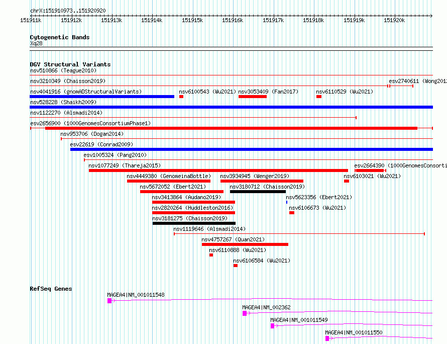 Variant DetailsVariant: esv2656900 | Internal ID | 9923005 | | Landmark | | | Location Information | | | Cytoband | Xq28 | | Allele length | | Assembly | Allele length | | hg38 | 9948 | | hg19 | 9948 |