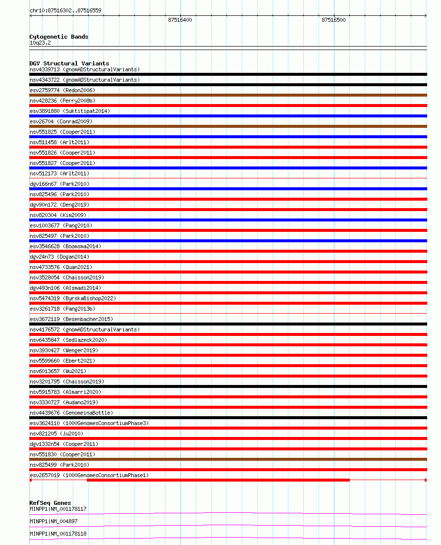 Variant DetailsVariant: esv2657019 | Internal ID | 9923124 | | Landmark | | | Location Information | | | Cytoband | 10q23.2 | | Allele length | | Assembly | Allele length | | hg38 | 258 | | hg19 | 258 |