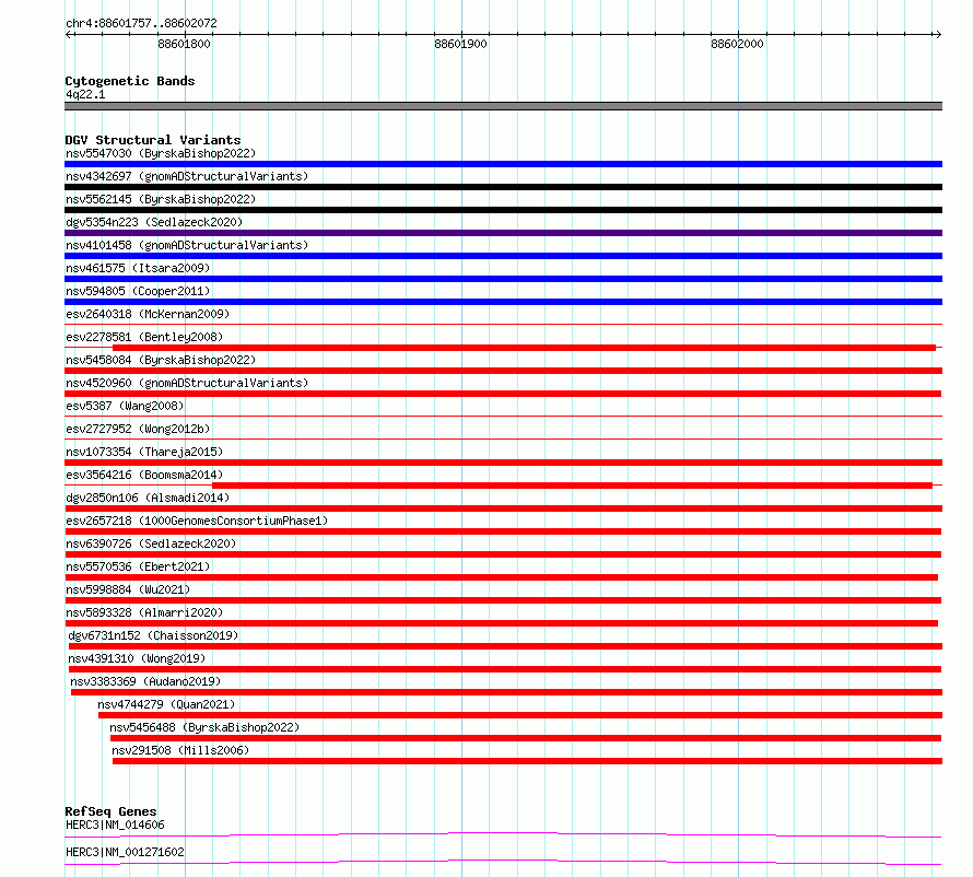 Variant DetailsVariant: esv2657218 | Internal ID | 9923323 | | Landmark | | | Location Information | | | Cytoband | 4q22.1 | | Allele length | | Assembly | Allele length | | hg38 | 316 | | hg19 | 316 |