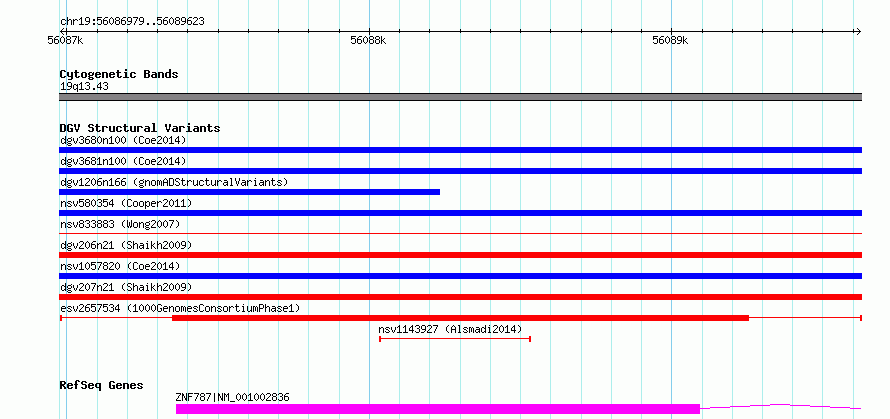 Variant DetailsVariant: esv2657534 | Internal ID | 9576953 | | Landmark | | | Location Information | | | Cytoband | 19q13.43 | | Allele length | | Assembly | Allele length | | hg38 | 2645 | | hg19 | 2648 |