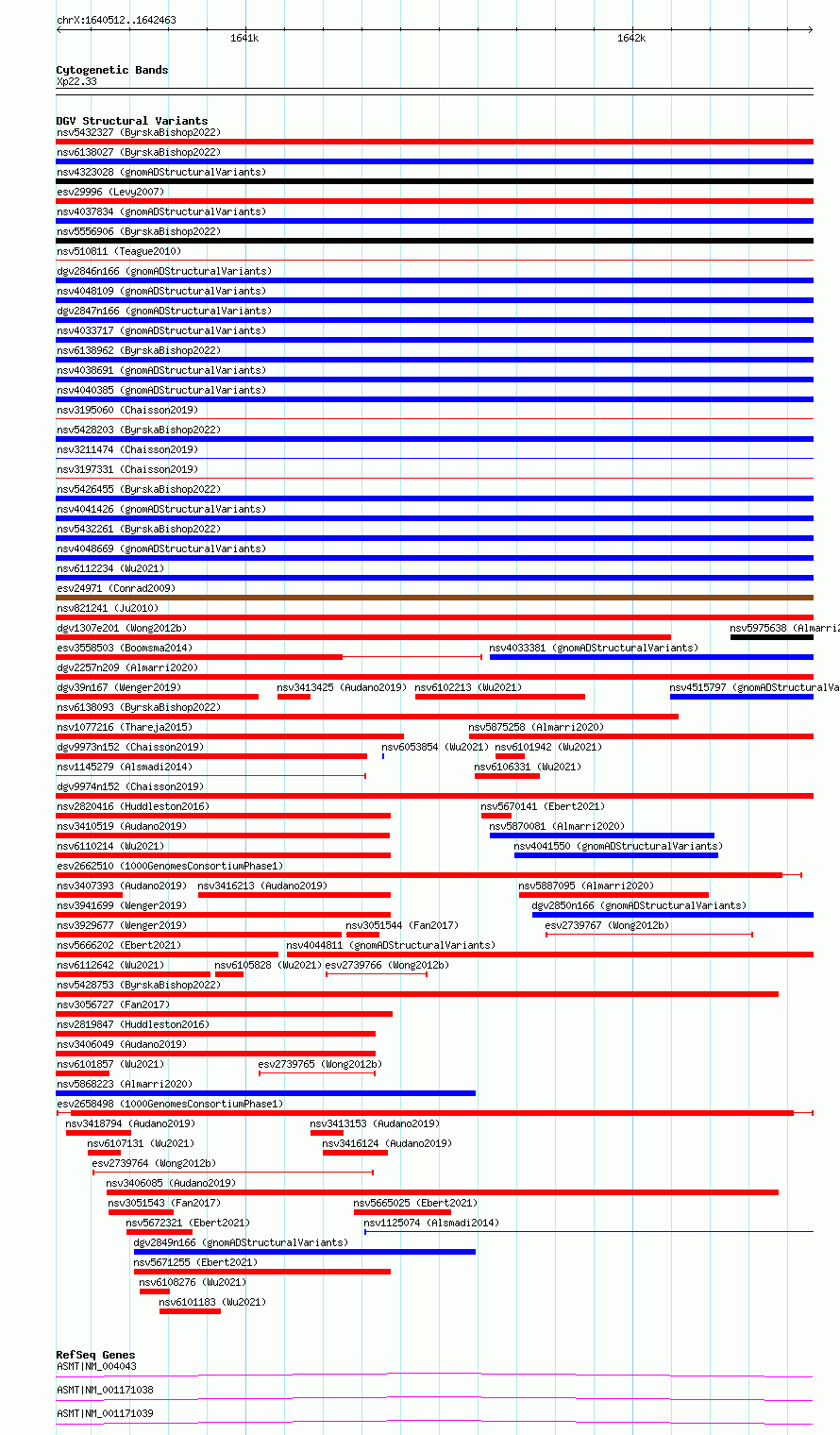 Variant DetailsVariant: esv2658498| Internal ID | 9924603 | | Landmark | | | Location Information | | | Cytoband | Xp22.33 | | Allele length | | Assembly | Allele length | | hg38 | 1952 | | hg19 | 1952 |
