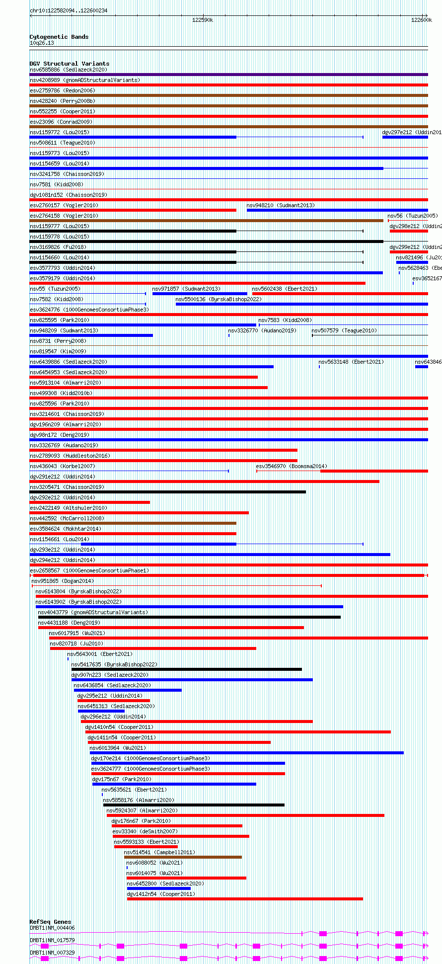 Variant DetailsVariant: esv2658567 | Internal ID | 9924672 | | Landmark | | | Location Information | | | Cytoband | 10q26.13 | | Allele length | | Assembly | Allele length | | hg38 | 18141 | | hg19 | 18141 |