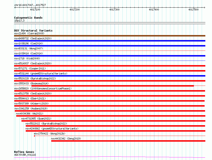 Variant DetailsVariant: esv2658820 | Internal ID | 9924925 | | Landmark | | | Location Information | | | Cytoband | 16p13.3 | | Allele length | | Assembly | Allele length | | hg38 | 481 | | hg19 | 481 |