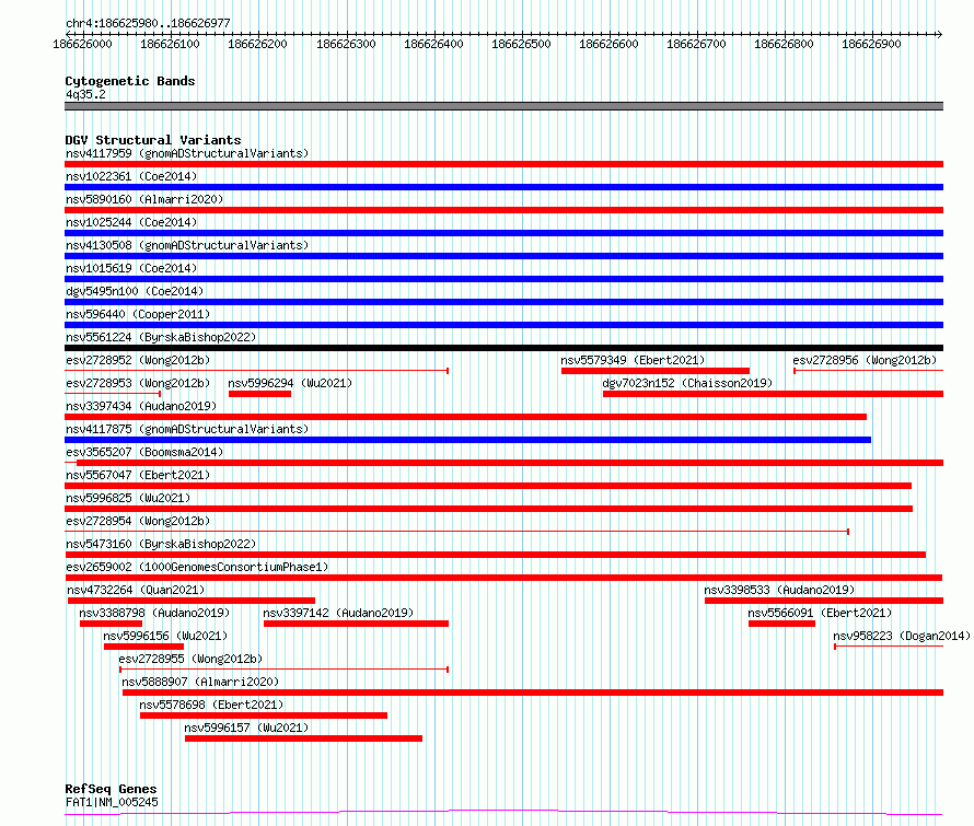 Variant DetailsVariant: esv2659002| Internal ID | 9925107 | | Landmark | | | Location Information | | | Cytoband | 4q35.2 | | Allele length | | Assembly | Allele length | | hg38 | 998 | | hg19 | 998 |