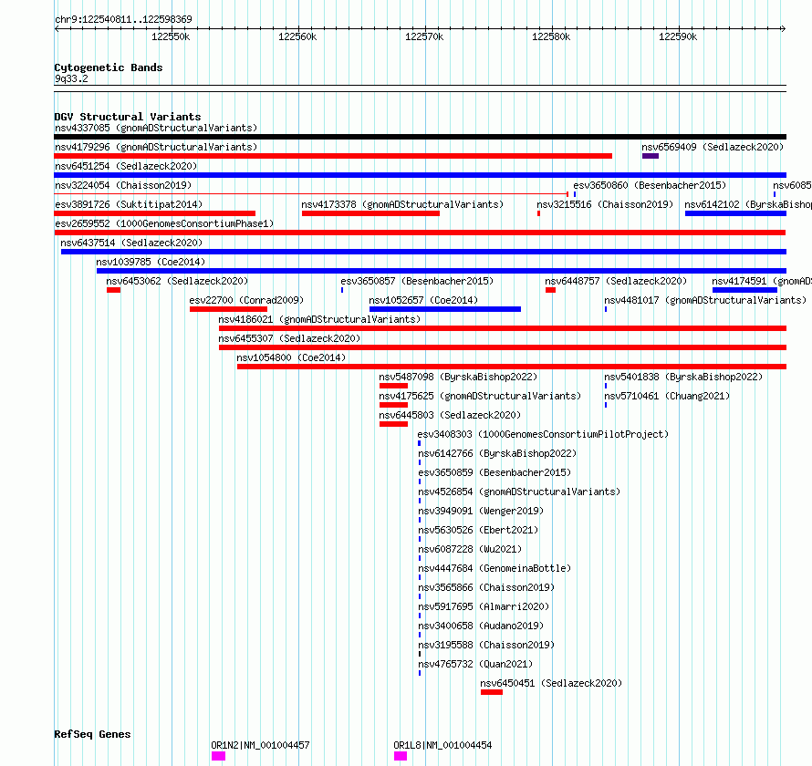 Variant DetailsVariant: esv2659552| Internal ID | 9925657 | | Landmark | | | Location Information | | | Cytoband | 9q33.2 | | Allele length | | Assembly | Allele length | | hg38 | 57559 | | hg19 | 57559 |