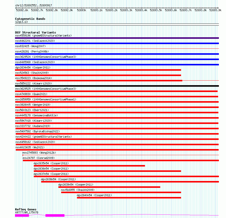 Variant DetailsVariant: esv2659959 | Internal ID | 9926064 | | Landmark | | | Location Information | | | Cytoband | 12q13.13 | | Allele length | | Assembly | Allele length | | hg38 | 1366 | | hg19 | 1366 |