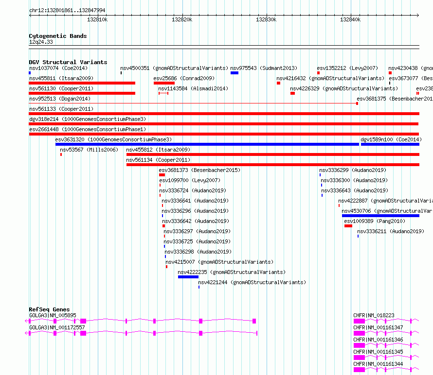 Variant DetailsVariant: esv2661448Internal ID | 9580867 | Landmark | | Location Information | | Cytoband | 12q24.33 | Allele length | Assembly | Allele length | hg38 | 46134 | hg19 | 46134 |
