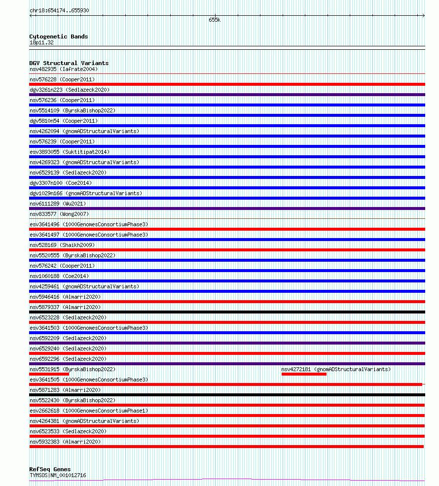 Variant DetailsVariant: esv2662618| Internal ID | 9928723 | | Landmark | | | Location Information | | | Cytoband | 18p11.32 | | Allele length | | Assembly | Allele length | | hg38 | 1757 | | hg19 | 1757 |