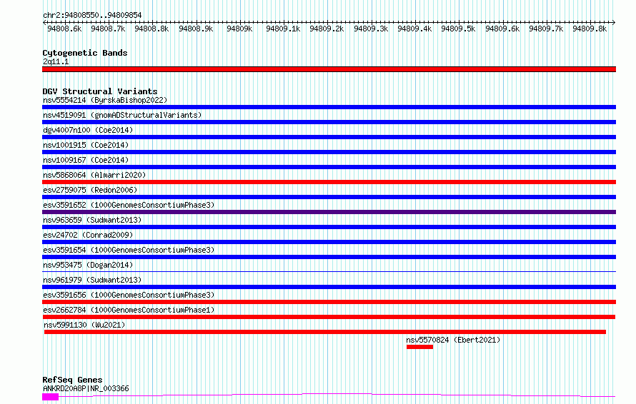Variant DetailsVariant: esv2662784| Internal ID | 9928889 | | Landmark | | | Location Information | | | Cytoband | 2q11.1 | | Allele length | | Assembly | Allele length | | hg38 | 1305 | | hg19 | 1305 |