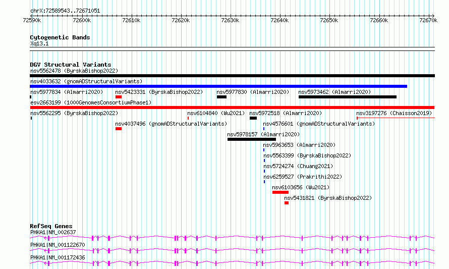Variant DetailsVariant: esv2663199| Internal ID | 9929304 | | Landmark | | | Location Information | | | Cytoband | Xq13.2 | | Allele length | | Assembly | Allele length | | hg38 | 81509 | | hg19 | 81509 |