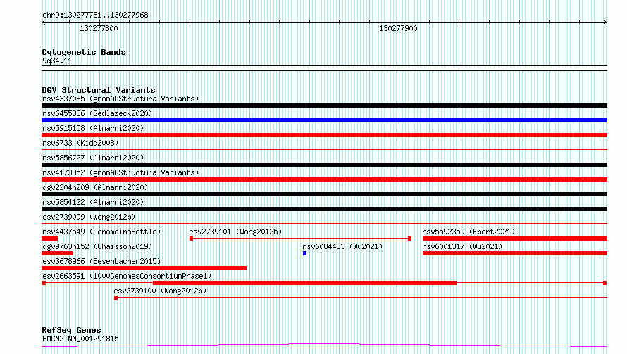Variant DetailsVariant: esv2663591 | Internal ID | 9929696 | | Landmark | | | Location Information | | | Cytoband | 9q34.11 | | Allele length | | Assembly | Allele length | | hg38 | 188 | | hg19 | 188 |