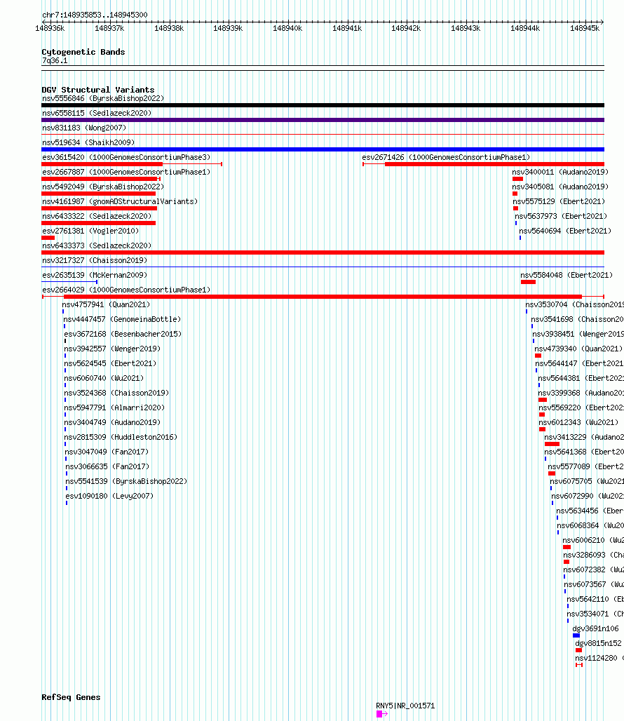 Variant DetailsVariant: esv2664029| Internal ID | 9930134 | | Landmark | | | Location Information | | | Cytoband | 7q36.1 | | Allele length | | Assembly | Allele length | | hg38 | 9448 | | hg19 | 9448 |