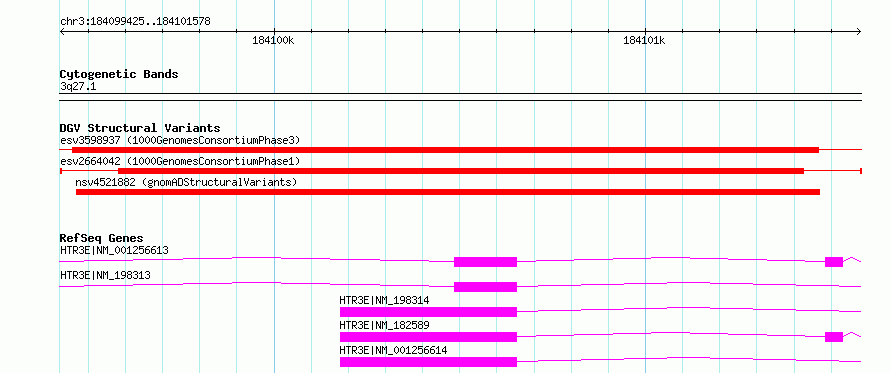Variant DetailsVariant: esv2664042| Internal ID | 9583461 | | Landmark | | | Location Information | | | Cytoband | 3q27.1 | | Allele length | | Assembly | Allele length | | hg38 | 2154 | | hg19 | 2154 |