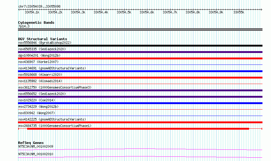 Variant DetailsVariant: esv2664735 | Internal ID | 9930840 | | Landmark | | | Location Information | | | Cytoband | 7p14.3 | | Allele length | | Assembly | Allele length | | hg38 | 1060 | | hg19 | 1060 |