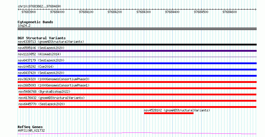 Variant DetailsVariant: esv2665093| Internal ID | 9931198 | | Landmark | | | Location Information | | | Cytoband | 10q24.2 | | Allele length | | Assembly | Allele length | | hg38 | 829 | | hg19 | 829 |