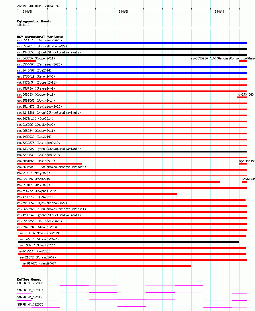 Variant DetailsVariant: esv2666560 | Internal ID | 9932665 | | Landmark | | | Location Information | | | Cytoband | 15q11.2 | | Allele length | | Assembly | Allele length | | hg38 | 2390 | | hg19 | 2390 |