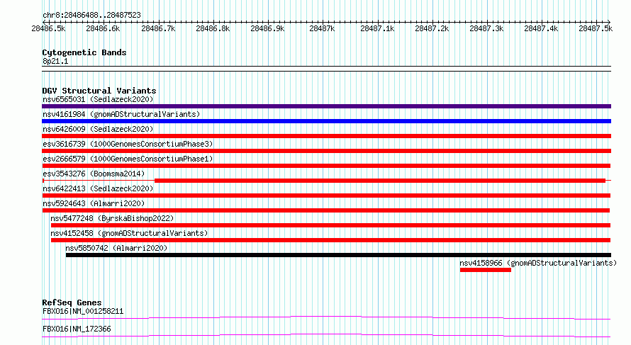 Variant DetailsVariant: esv2666579| Internal ID | 9932684 | | Landmark | | | Location Information | | | Cytoband | 8p21.1 | | Allele length | | Assembly | Allele length | | hg38 | 1036 | | hg19 | 1036 |