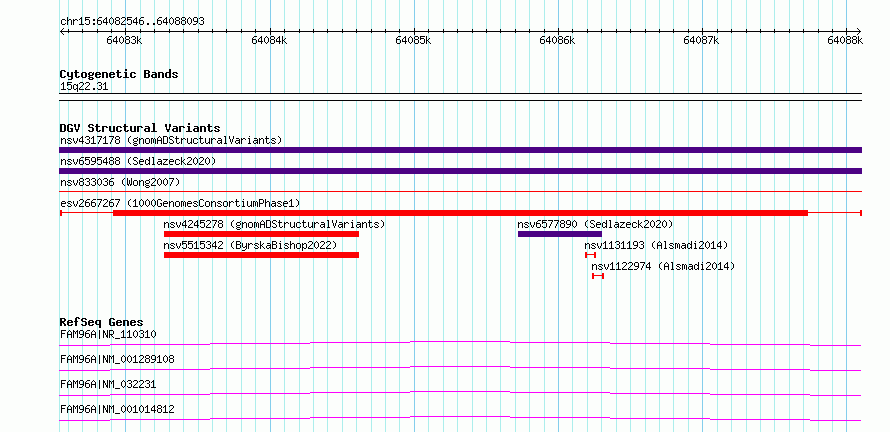 Variant DetailsVariant: esv2667267 | Internal ID | 9933372 | | Landmark | | | Location Information | | | Cytoband | 15q22.31 | | Allele length | | Assembly | Allele length | | hg38 | 5548 | | hg19 | 5548 |