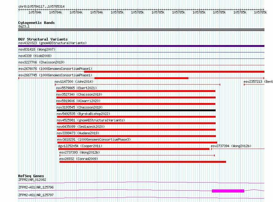 Variant DetailsVariant: esv2667745 | Internal ID | 9933850 | | Landmark | | | Location Information | | | Cytoband | 8q23.1 | | Allele length | | Assembly | Allele length | | hg38 | 1198 | | hg19 | 1198 |
