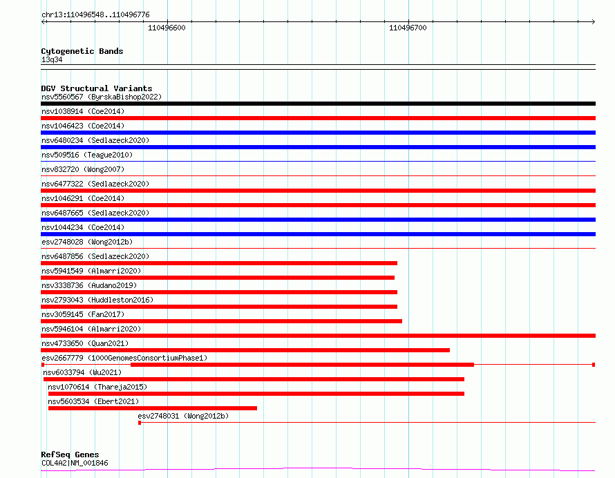 | | Variant Type | CNV deletion | | Copy Number | | | Allele State | | | Allele Origin | | | Probe Count | | | Validation Flag | | | Merged Status | M | | Merged Variants | | | Supporting Variants | essv6137719, essv6095725, essv6069673, essv6479933, essv5533120, essv6263787, essv6590341, essv5982471, essv5980988, essv6251900, essv6493841, essv6286200, essv6006905, essv5698837, essv6116799, essv5604606, essv5572100, essv5745354, essv5832896, essv6377494, essv6425625, essv6231809, essv6587998, essv5715305, essv6358130, essv6110945, essv5813443, essv5445350, essv6403372, essv6073699, essv6076913, essv6498487, essv5730038, essv5563025, essv6488294, essv6177719, essv6286606, essv6543674, essv5837407, essv5401066, essv6416382, essv6160691, essv6594628, essv6103550, essv5944923, essv5482133, essv6538010, essv5749399, essv6088661, essv5440850, essv5760868, essv5981440, essv5553841, essv5911887, essv6383030, essv5578547, essv5807799, essv5936770, essv6445981, essv6272550, essv6280903 | | Samples | HG00650, NA18621, HG00524, NA18599, NA18486, HG00449, HG00654, HG01366, NA18597, NA18595, NA18635, NA18558, HG00330, HG01492, HG00346, NA18582, HG01083, NA18964, HG00427, NA18557, HG00326, HG00530, HG00419, HG00464, NA18544, NA18613, HG00282, HG00328, HG00436, HG00584, HG00533, HG00583, HG00500, HG00619, HG00708, HG00284, HG00651, HG00690, HG00479, HG00331, NA18532, HG01101, HG00525, NA18576, NA18632, NA18542, HG00336, HG00285, NA18543, HG00607, HG00418, HG00707, HG00614, HG00513, HG00421, HG01377, HG00472, NA18624, NA18623, HG01061, HG00437 | | Known Genes | COL4A2 | | Method | Merging | | Analysis | No reference, merging analysis | | Platform | Merging | | Comments | | | Reference | 1000_Genomes_Consortium_Phase_1 | | Pubmed ID | 23128226 | | Accession Number(s) | esv2667779