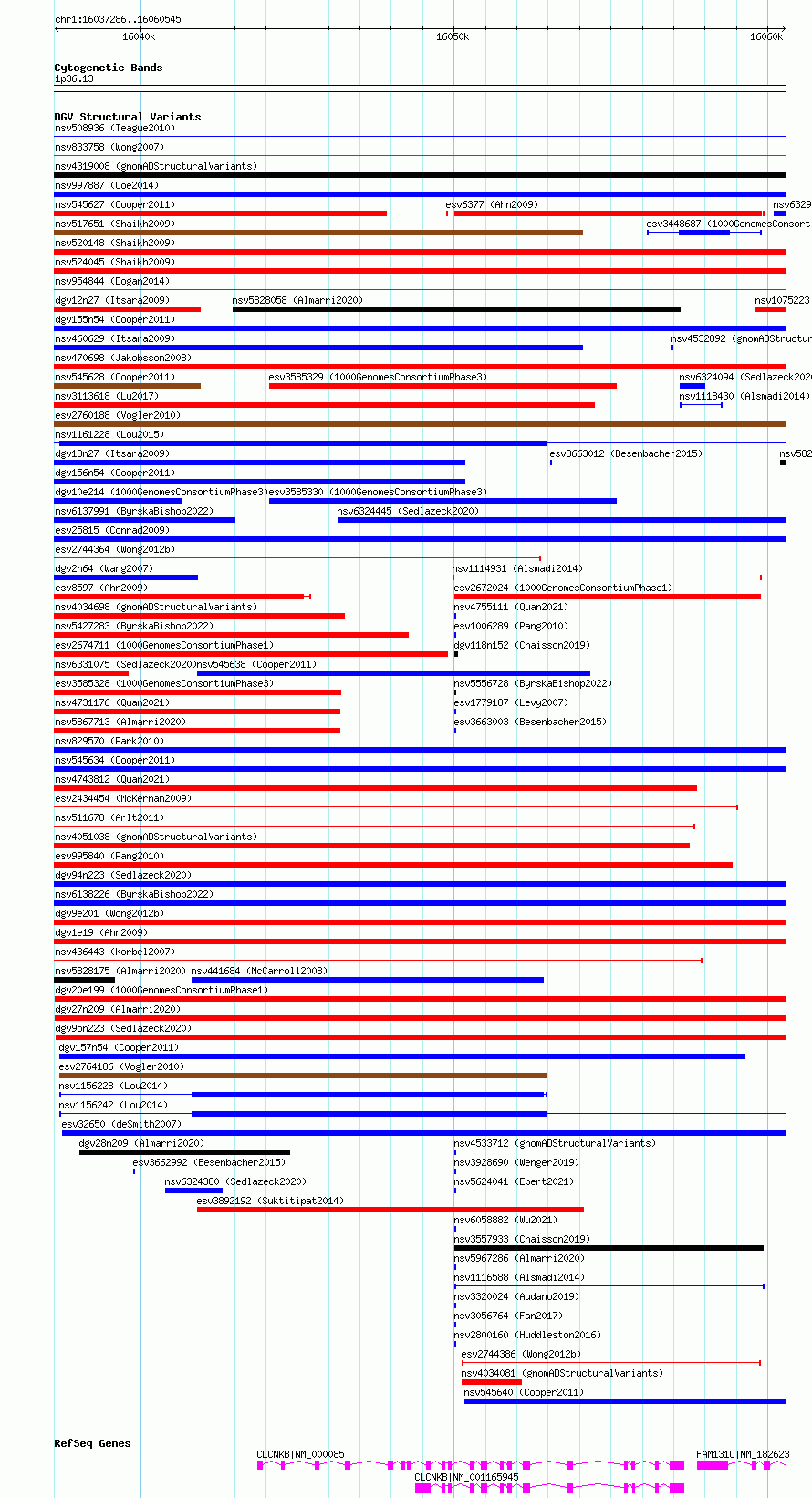 Variant DetailsVariant: esv2667784 | Internal ID | 9933889 | | Landmark | | | Location Information | | | Cytoband | 1p36.13 | | Allele length | | Assembly | Allele length | | hg38 | 23260 | | hg19 | 23260 |