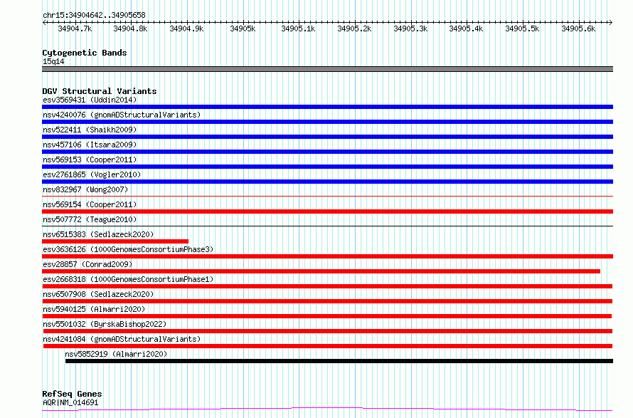 Variant DetailsVariant: esv2668318| Internal ID | 9934423 | | Landmark | | | Location Information | | | Cytoband | 15q14 | | Allele length | | Assembly | Allele length | | hg38 | 1017 | | hg19 | 1017 |