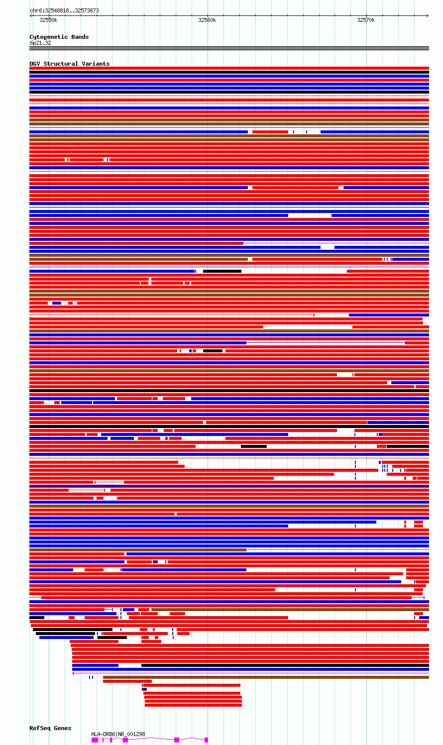 Variant DetailsVariant: esv2668321 | Internal ID | 9934426 | | Landmark | | | Location Information | | | Cytoband | 6p21.32 | | Allele length | | Assembly | Allele length | | hg38 | 25056 | | hg19 | 25056 |
