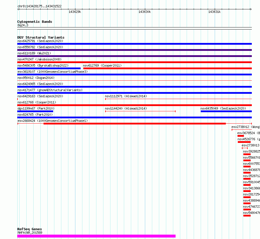 Variant DetailsVariant: esv2668424 | Internal ID | 9934529 | | Landmark | | | Location Information | | | Cytoband | 8q24.3 | | Allele length | | Assembly | Allele length | | hg38 | 3348 | | hg19 | 3348 |