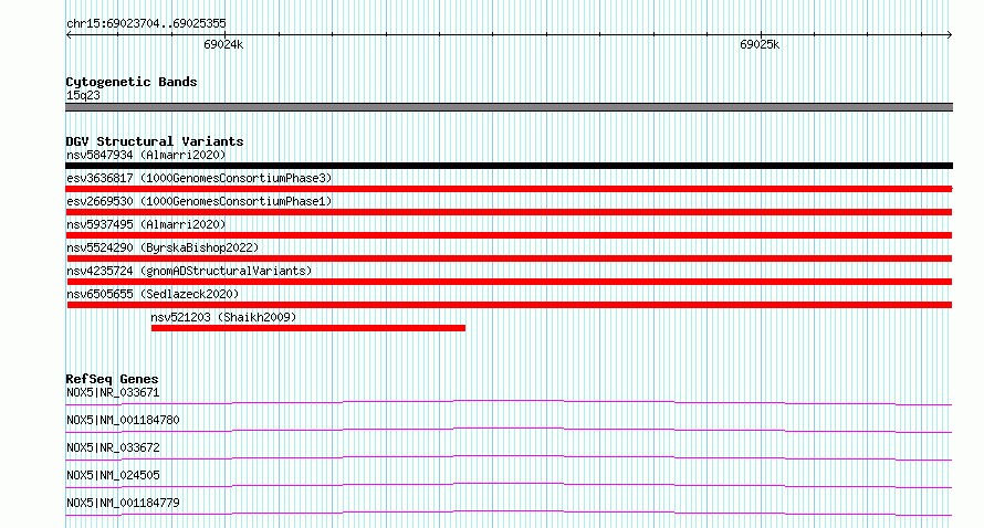 Variant DetailsVariant: esv2669530| Internal ID | 9935635 | | Landmark | | | Location Information | | | Cytoband | 15q23 | | Allele length | | Assembly | Allele length | | hg38 | 1652 | | hg19 | 1652 |